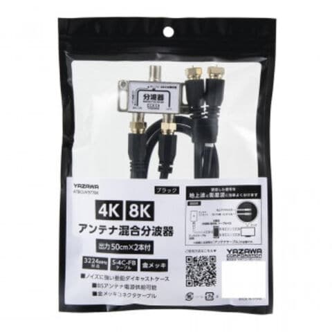 YAZAWA(ヤザワ) アンテナ混合分波器OUT50CM×2本ケーブル付黒 ATBCUV977BK