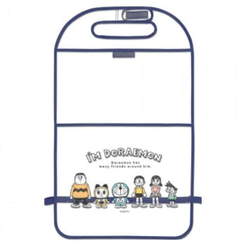 ドラえもんの可愛いキックガードポケット!車のシートを汚れから守ります。タブレットを入れるポケット付。面ファスナーでヘッドレストに簡単装着。本体はビニール生地のため泥や汚れがついてもお手入れ簡単。物入れとしても使用できます。