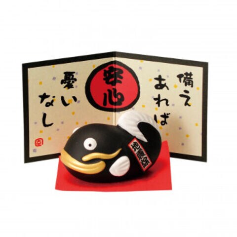 M0374 地震除けなまず(黒) 萬古焼置物