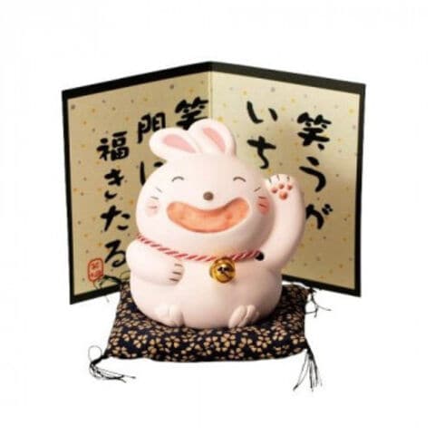 M0378 笑福うさぎ ベージュ 萬古焼置物