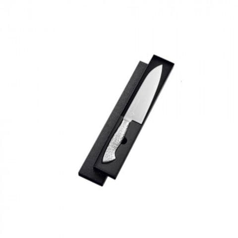 | 刃物の命ともいえる刃研ぎは、受け継がれてきた伝統技法による手仕事。職人が長年の経験を元に時間をかけてじっくり研ぎ上げ、鮮烈な切れ味を生み出しています。ハンドルは、気品ある槌目模様、深みある銀の色調。変則的な打痕が美しい陰影を生み出す印象的なデザインです。槌目の上に滑りにくい加工を施し、手に吸い付くような感覚と握りやすさを実現。さらに中を空洞にしたモナカ柄にする事で長時間使っても疲れにくい構造です。 |