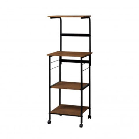 | キャスター移動も可能なので、床の掃除も簡単に行えます。上部天板は背面から立ち上がるフレームによりトースターやストック品をスッキリ収納可能です。中段棚はスライド式なのでポットや炊飯器の蒸気を逃がし取り出しもスムーズです。 |
