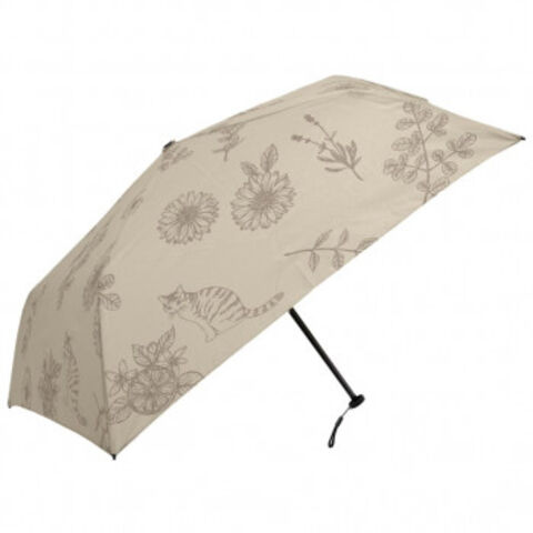 三国 グラスファイバー骨軽量ミニ折りたたみ傘 スケッチフラワーと猫(トートバッグ) ベージュ A3114115