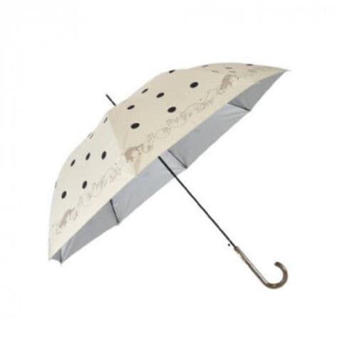 三国 グラスファイバー骨 裏UVシルバーコーティング雨晴兼用大きめ傘 猫と水玉 ベージュ S1712015
