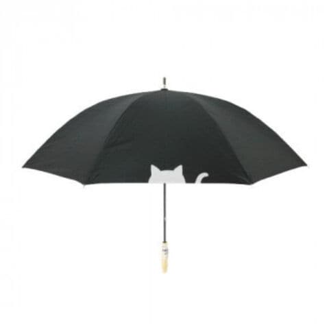 三国 グラスファイバー骨 裏黒コーティング晴雨兼用長傘 傘と猫 黒 S1517402