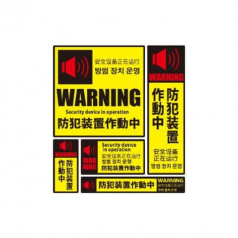 防犯ステッカー5枚セット (英語・中国語・韓国語対応) 警報B(防犯装置作動中) 大判タイプ SS-012L