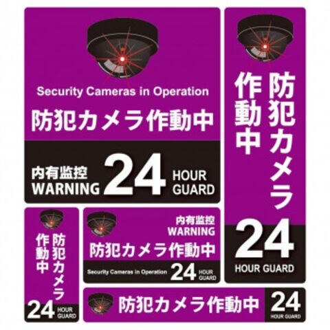 防犯ステッカー5枚セット 01紫(防犯カメラ作動中) SC01P-SS
