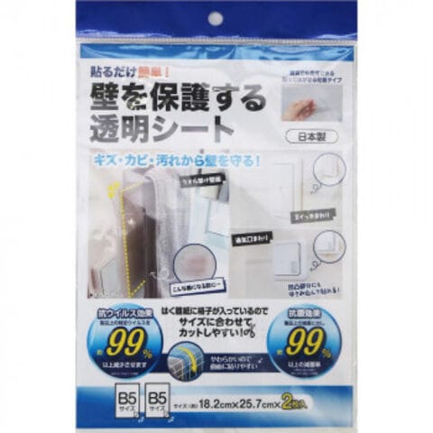 壁を保護する透明シート 抗ウイルス 抗菌 18.2cm×25.7cm×2枚入 HT-02 半透明