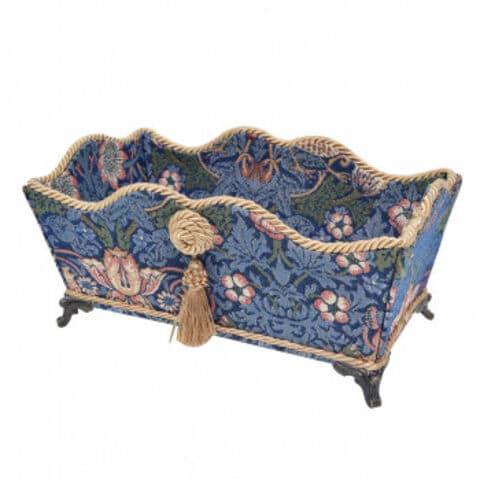 | ジェニファーテイラーとウィリアムモリスのデザインのコラボ。真鍮のネコ脚と曲線を活かしたデザインが美しい小物入れです。洗面台に置いても水濡れが気になりません。もちろんリビングや寝室でもおしゃれで機能的。リモコン入れにもお勧めです。イチゴ泥棒の織生地が高級感を演出します。 |