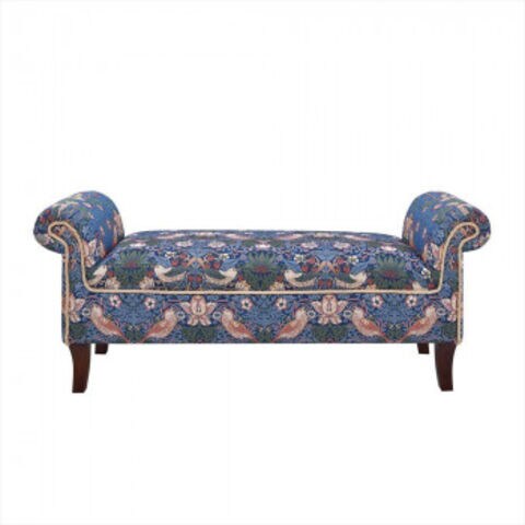 | ジェニファーテイラーとウィリアムモリスのデザインのコラボ。イチゴ泥棒の織生地が高級感を演出します。リビング、玄関などで活躍してくれるベンチ。ロール型のアームのデザインがオシャレです。 |