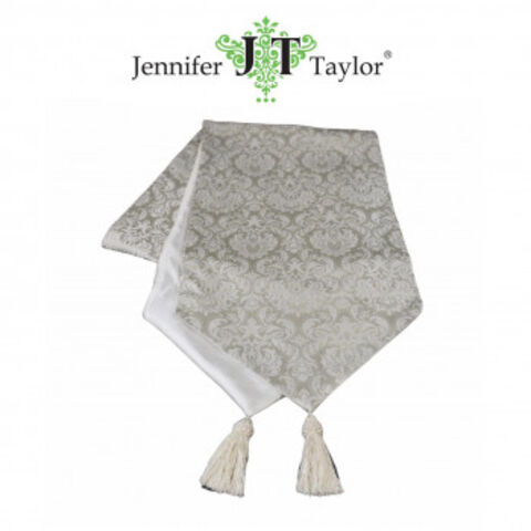 | ダマスク模様の外観は洗練された上質感が漂います。タッセルを使いエレガントなデザインと実用性を兼ね備えています。テーブルやコンソール、玄関のシューズBOXの上などにこれを1枚敷くだけでとても高級感がでます。ベットメイクに使ってもお洒落です。 |