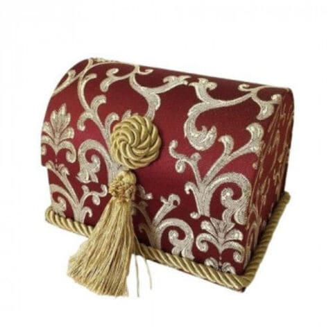 | イタリアの伝統的なアラベスク模様を施した深い赤の布地を使い、クラシックで落ち着いた仕上がりが印象的です。中も生地貼りです。 |