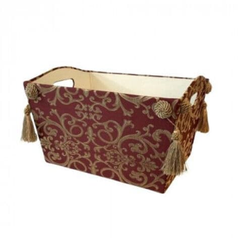 | イタリアの伝統的なアラベスク模様を施した深い赤の布地を使い、クラシックで落ち着いた仕上がりが印象的です。ジェニファーテイラーのマガジンホルダーは4隅にタッセルをあしらっていてとてもエレガント。しかも中も生地貼りなので丈夫でとっても実用的です。雑誌や新聞の収納にはもちろん、小物入れにも便利です。また、お客様用のスリッパを入れて、スリッパラックにもおすすめです。 |