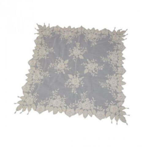 | エレガントなレースのテーブルクロスです。高級感のあるアイボリーのレースに、ハンドメイドでビーズの刺繍を施し、高級感のある仕上がりです。 |