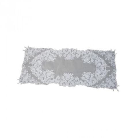 | エレガントなレースのテーブルランナーです。純白のレースに、ハンドメイドでビーズ・スパンコール・フェイクダイヤの刺繍を施し、高級感のある仕上がりです。 |