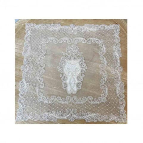 | 美しいベージュと金糸の細やかな刺繍と、ベージュ系ニュアンスカラーのベロア生地のコンビネーションが上品なテーブルセンター。小ぶりなサイズで花瓶等の敷物や小物の上に掛けて目隠し等、色々な場所でお使い頂けます。 |