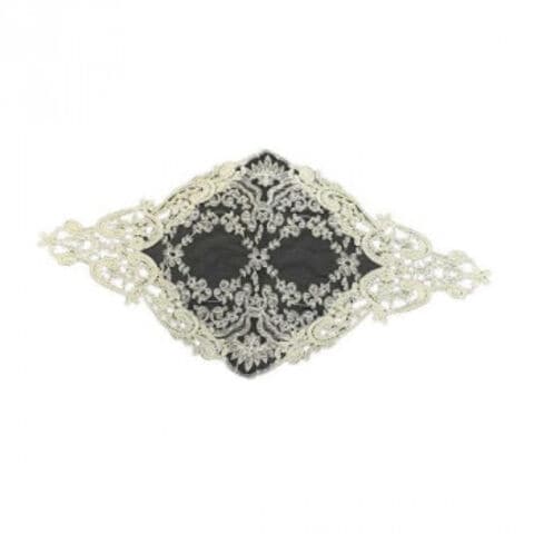 | 黒のチュールレースにゴールドのレースを合わせたお洒落で華やかなデザインのセンターです。シックで高級感のある仕上がりです。柔らかな手触りで扱い易くテーブルの上や玄関のシューズBOXの上など様々な場所でお使い頂けます。 |