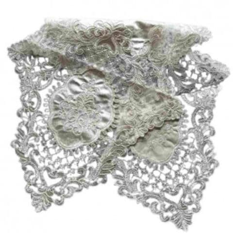 | 淡いベージュ系ニュアンスカラーの色のベロア生地が上品なテーブルセンター。テーブルの中央やシューズBOXの上などにお使い頂きやすいサイズとなっています。 |
