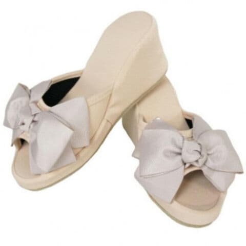 | 大きな3重のグログランのリボンが特徴のハイカットのルームシューズ。裏底はパタパタ大きな音が出にくい静音仕様になっています。印象的な大きめのリボンがアクセントになり、豪華さを演出しています。履いているだけで、エレガントな気分になれそう。シックな色合いが高級感を感じさせ、自宅用にはもちろん、ご家族、お客様用にもおすすめです。 ※使用感には、個人差があります。 |