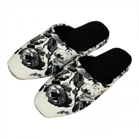 | 「Noir Rose(ノワール・ローズ)」優雅に足元を彩る、大人のルームスリッパ。ブラックローズのエレガントなデザインが印象的な「Noir Rose」。上質なファブリックに繊細なバラの模様が上品で高級感の有るスリッパです。モノトーンのバラ柄が洗練された大人の空間を演出。クッション性のあるインソールで長時間履いても疲れにくいです。 |