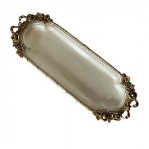 | 細部にまでこだわったヴィクトリアンデザインの美しさ。上品なペントレイです。細長いので場所を取らず、いろいろな用途で活躍してくれます。アンティークアイボリーとゴールドの仕上げは重厚で、シルバーは本物のアンティーク銀器のような仕上がりです。高級感がありギフトにもおすすめです。 |