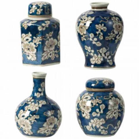 | 陶器に彩色で紋様を描いた美しい花器と壺です。クラシックにも、モダンインテリアにもよく合います。フラワーアレンジメントにもお勧めです。 |