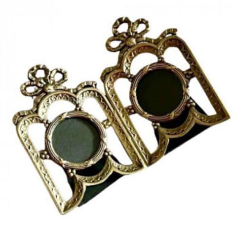 | BRASS(真鍮)をアンティークゴールドに仕上げた重厚感・高級感のあるクラシックな2連のフォトフレームです。側面のレリーフや取手も美しいデザインです。裏面は黒のベルベットです。 ※2面の接合部は固定されていて、角度の変更はできません。 ※アンティーク調仕上げの為、多少の小傷、凹凸、個体差がございます。 |