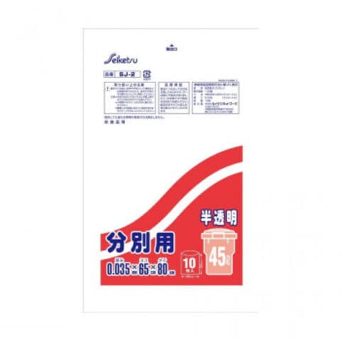SJ-2 ゴミ袋 分別用45L(厚み0.035) 10枚入 半透明 ×50冊