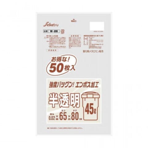 | 強化剤メタロセン配合の、強度抜群ゴミ袋です。白半透明(乳白)仕様で中が見えにくく、プライバシーにも配慮できます。 |