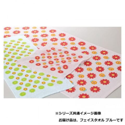 犬飼タオル GA160J 表ガーゼ裏パイル顔料プリントタオル(レトロフラワー) フェイスタオル ブルー