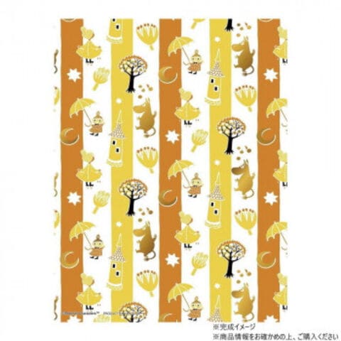 | 色彩とグラデーションの箔表現をお楽しみいただけます。従来の印刷だけでは表現しきれない光沢感と高級感のある輝きが魅力です。これを記念した特別デザインのアートに相応しい仕上がりになっており、お部屋を彩るインテリアとしても最適です。ムーミンたちが暖かみのあるオレンジやイエローのストライプに散りばめられたアートが、心地よい空間を演出します。 |