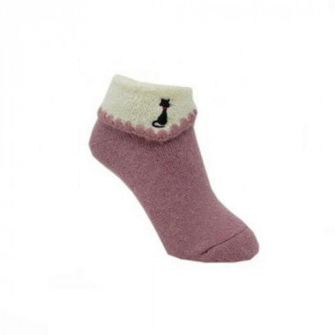 アンゴラ折返しルームソックス ネコ刺繍 22-24cm ピンク(3) 008316521