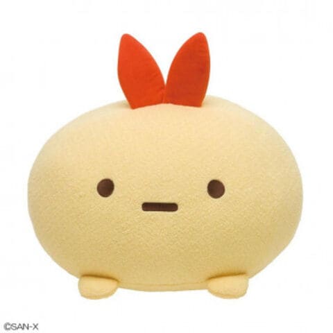 | 人気のスーパーもーちもち大福クッションにえびふらいのしっぽが登場!生地はカールしていて衣風です。 |