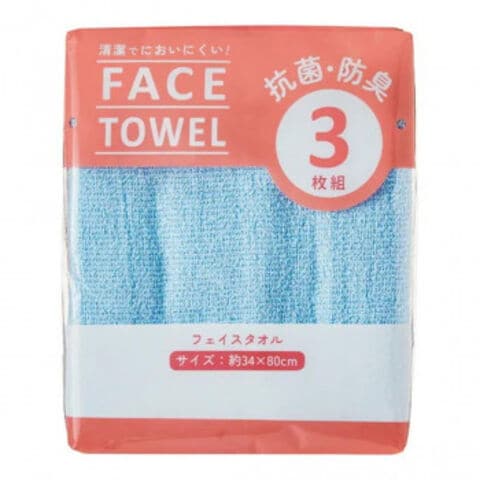 | フェイスタオル、3色ミックスの3枚入です。 |