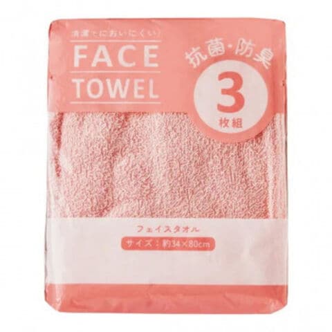 | フェイスタオル、ピンクの3枚入です。 |