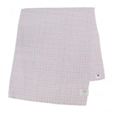 通常染色するパイル部分(糸が輪の形になっているところ)には白い糸を使用していますが、グラウンド(パイルの土台になる生地部分)に染めた糸を使いチェック柄を表現しています。パイルの白い糸が重なったやわらかなチェック柄は名の通り蜃気楼のような印象になります。
