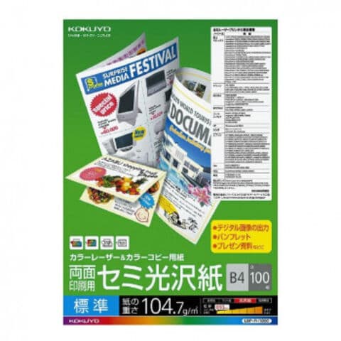 コクヨ カラーレーザー&カラーコピー用紙 両面印刷用 セミ光沢紙 100枚 B4 LBP-FH1800