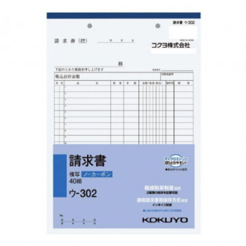 コクヨ NC複写簿 請求書 B5縦 2穴80mmピッチ20行 40組 ウ-302