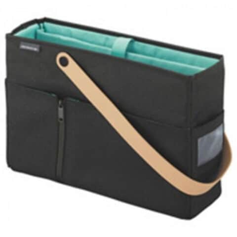| 機能性とデザイン性を兼ね備えた、フリーアドレスに適した社内持ち運び用バッグ。ワンショルダーベルトでパーソナルロッカーにすっきり収まる寸法設計。ショルダーベルトを手前に出しておくと、ロッカーからの取り出しに便利です。書類、ノートPC、マウス、電源ケーブル等をひとつにまとめられ、社内をスムーズに移動できます。両手をふさがず、楽に持ち運べるショルダーベルトタイプです。 マウス、電源ケーブルが収容できる前ポケット、書類を挿せる後ろポケット、ドリンク用ポケットなどの外ポケットでオフィス内で持ち運ぶものが素早く出し入れでき便利です。オフィスになじむデザインとカラーリングです。 ※本製品は、収容物を保証する設計にはなっておりません。 ※お使いの棚に収まるか、事前に寸法をご確認ください。 ※縫製品のため、上記寸法・質量には差が出る場合がございます。ご了承ください。 ※持ち運ぶ際は肩にかけてお運びください。手に持った状態で運びますと本体を階段などの段差にぶつけるおそれがあります。 |