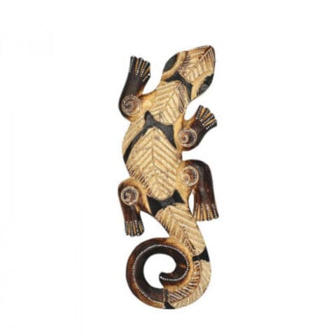 | お部屋にエキゾチックな雰囲気を演出してくれる、ゲコのモチーフです。立体的でインパクト大な見た目に今にも飛び出しそうなリアルさがあります。 ※ハンディクラフト商品のため木目による、デザインの個体差があります。 |