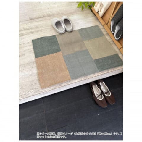 | モスグリーンやベージュ、ブラウンなど、自然を感じさせる落ち着いたアースカラーをパッチワーク風に組合わせ、玄関やリビングにやさしい彩りを添えます。 ※商品画像はできる限り実物の色に近づけるようにしておりますが、撮影環境、お部屋の照明等により実際の色味が異なる場合がございます。 |