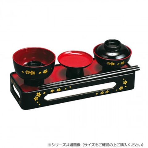 略式仏膳 7.5寸 黒(内朱) 蒔絵 桜 430875045x011