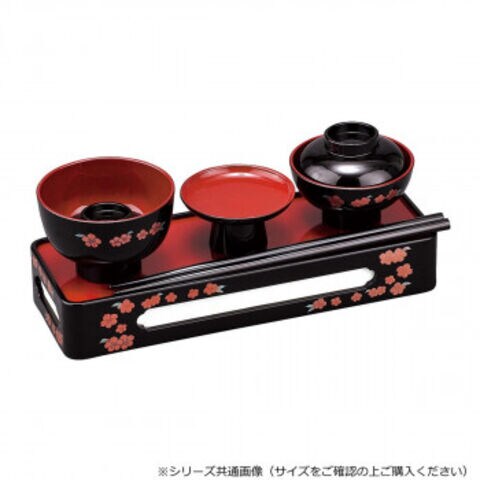 | 素材・材質 | 膳:ABS、表面加工/ウレタン 蒔絵:スクリーン印刷/ポリエステル・LG粉 椀:ABS、表面加工/ウレタン 箸:アテ材、表面加工/ウレタン |