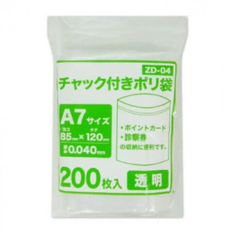 チャック付きポリ袋 A7サイズ 食品検査適合商品 ZD-04 透明 200枚×50冊