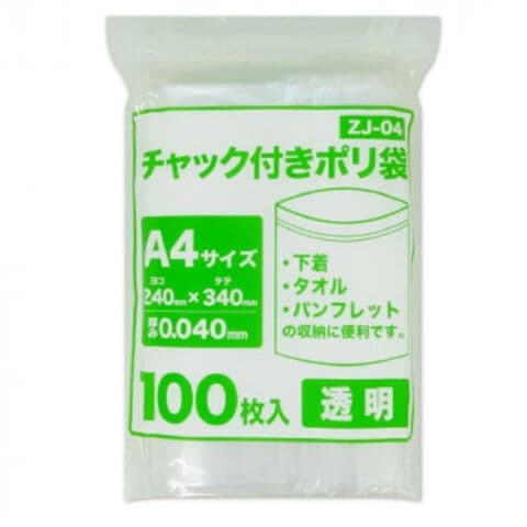 チャック付きポリ袋 A6サイズ 食品検査適合商品 ZF-04 透明 100枚×60冊