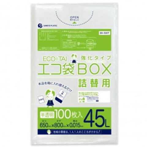 エコ袋BOX 詰替用 45L 強化タイプ BX-530T 半透明 100枚×8冊