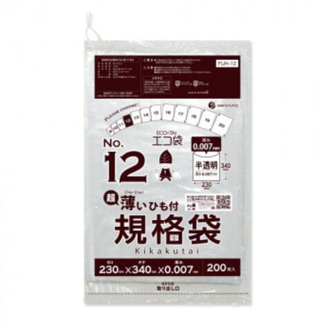 ECO TAI エコ袋 No.12 超薄いひも付規格袋 FUH-12 半透明 200枚×80冊