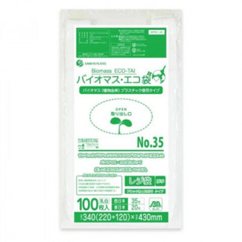 バイオマス・エコ袋 No35 西日本35号・東日本20号 BPRC-35 乳白 100枚×50冊
