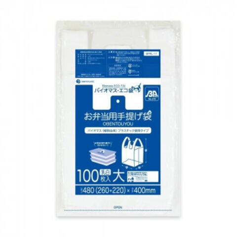 バイオマス・エコ袋 お弁当用手提げ袋大 BPRL-17 乳白 100枚×40冊