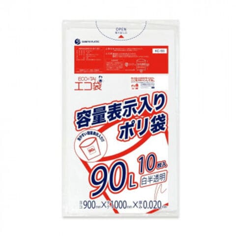 ECO TAI エコ袋 容量表示入りポリ袋90L KC-93 白半透明 10枚×40冊